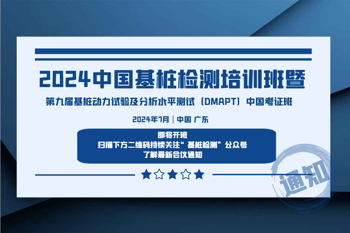 2024中國基樁檢測培訓(xùn)班暨第九屆基樁動力試驗(yàn)及分析水平測試(DMAPT)中國考證班將在花城廣州7月開班,考試回歸線下,最新消息請持續(xù)關(guān)注“基樁檢測微信公眾號”獲取最新會議信息。